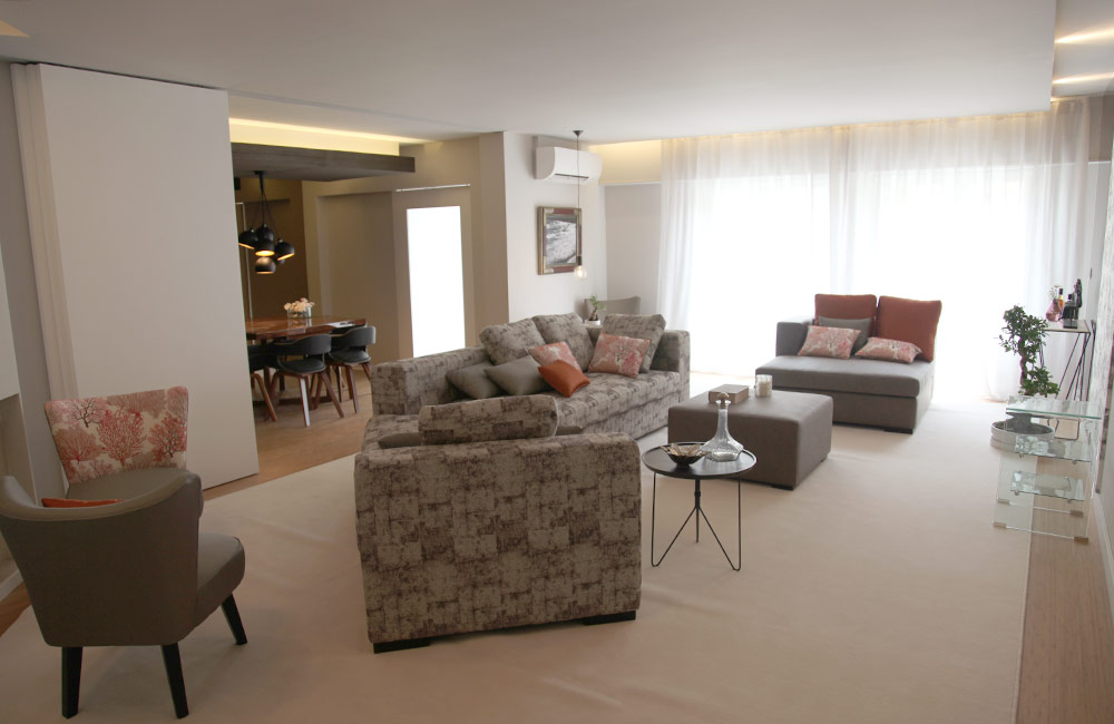 Intervençao de remodelação integral num apartamento de tipologia T3 onde foram trabalhadas as materialidades e o replaneamento da planta.