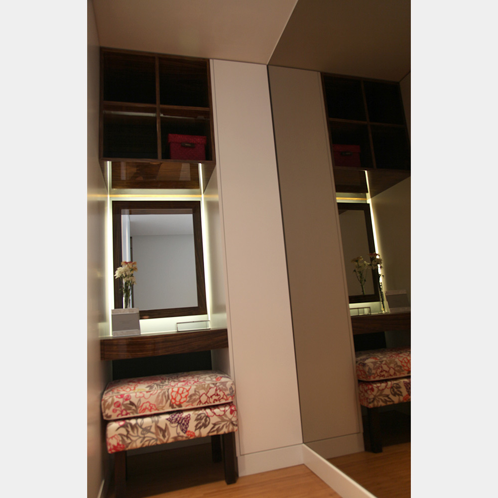 A suíte foi ampliada e integrou-se um closet.